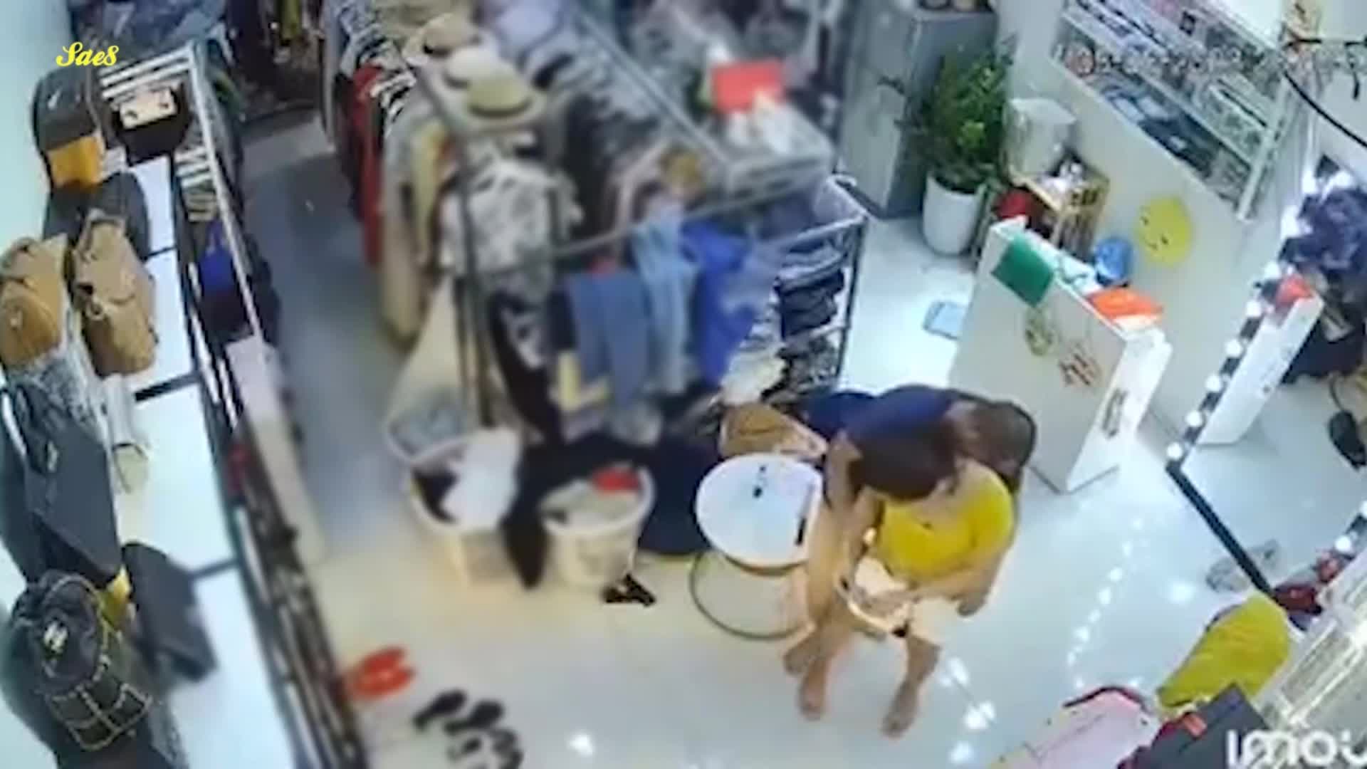 监控摄像头真实记录服装店美艳老板娘遭遇持刀歹徒劫色教科书式自救